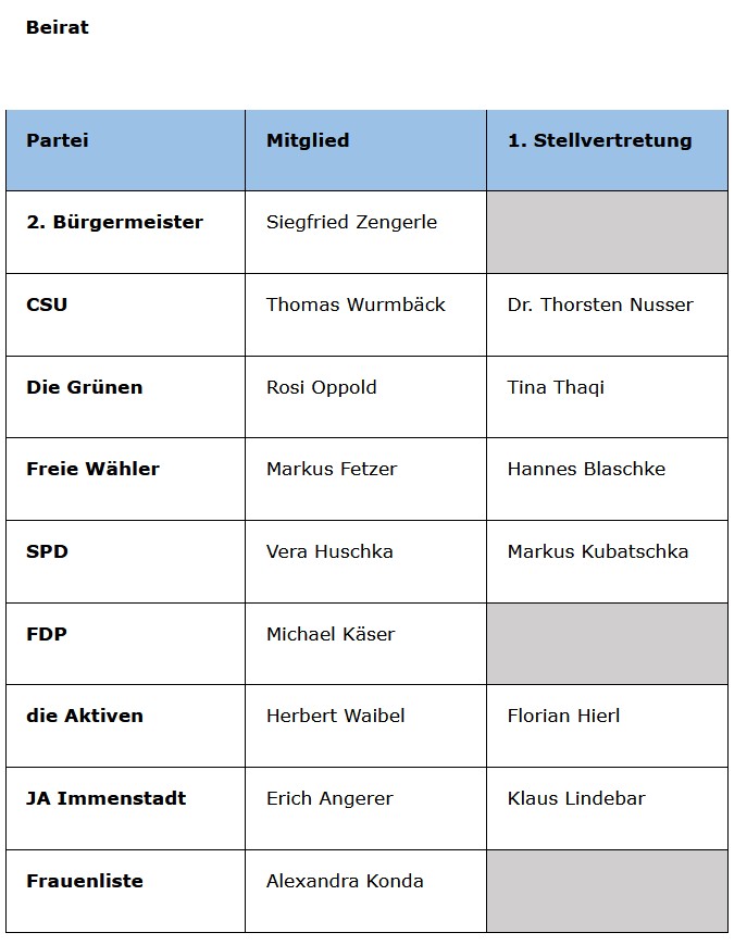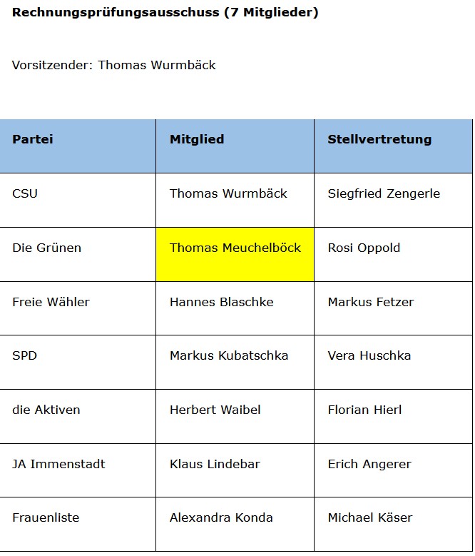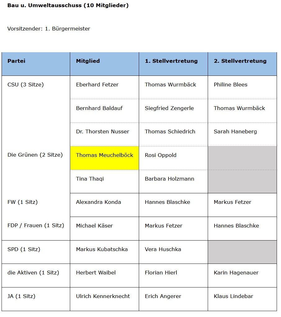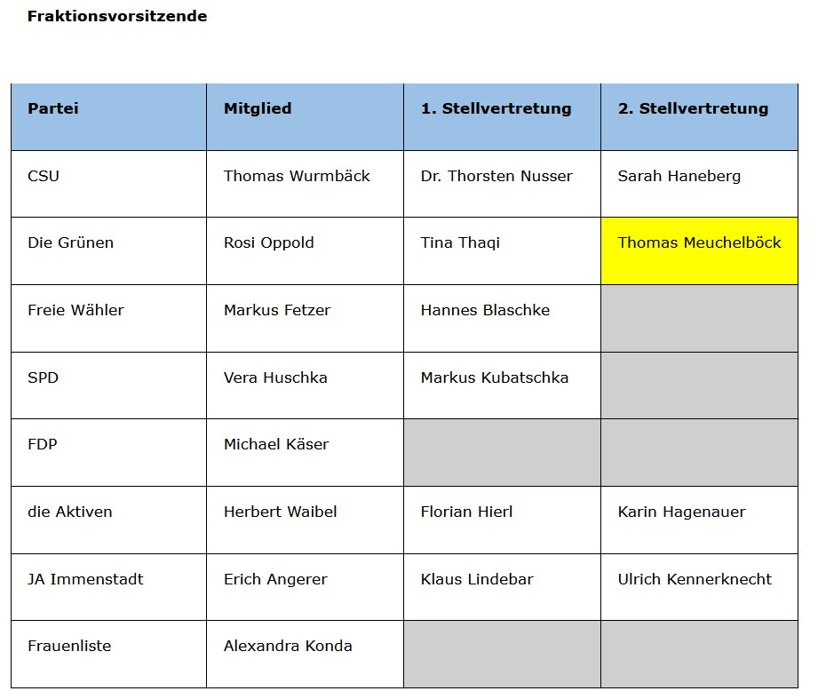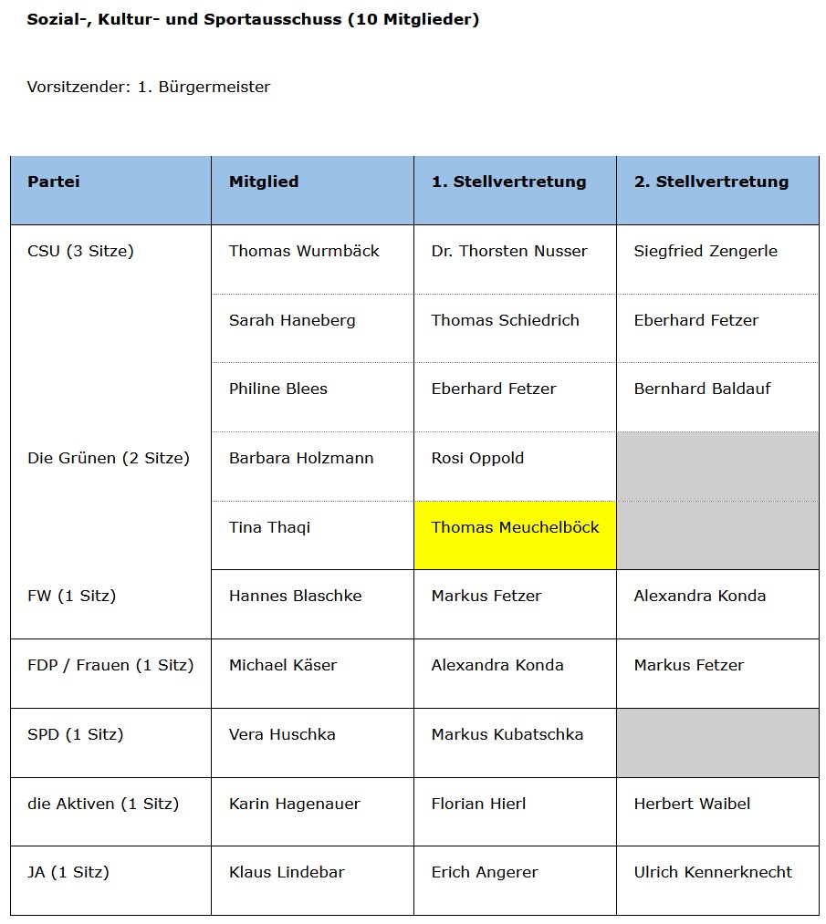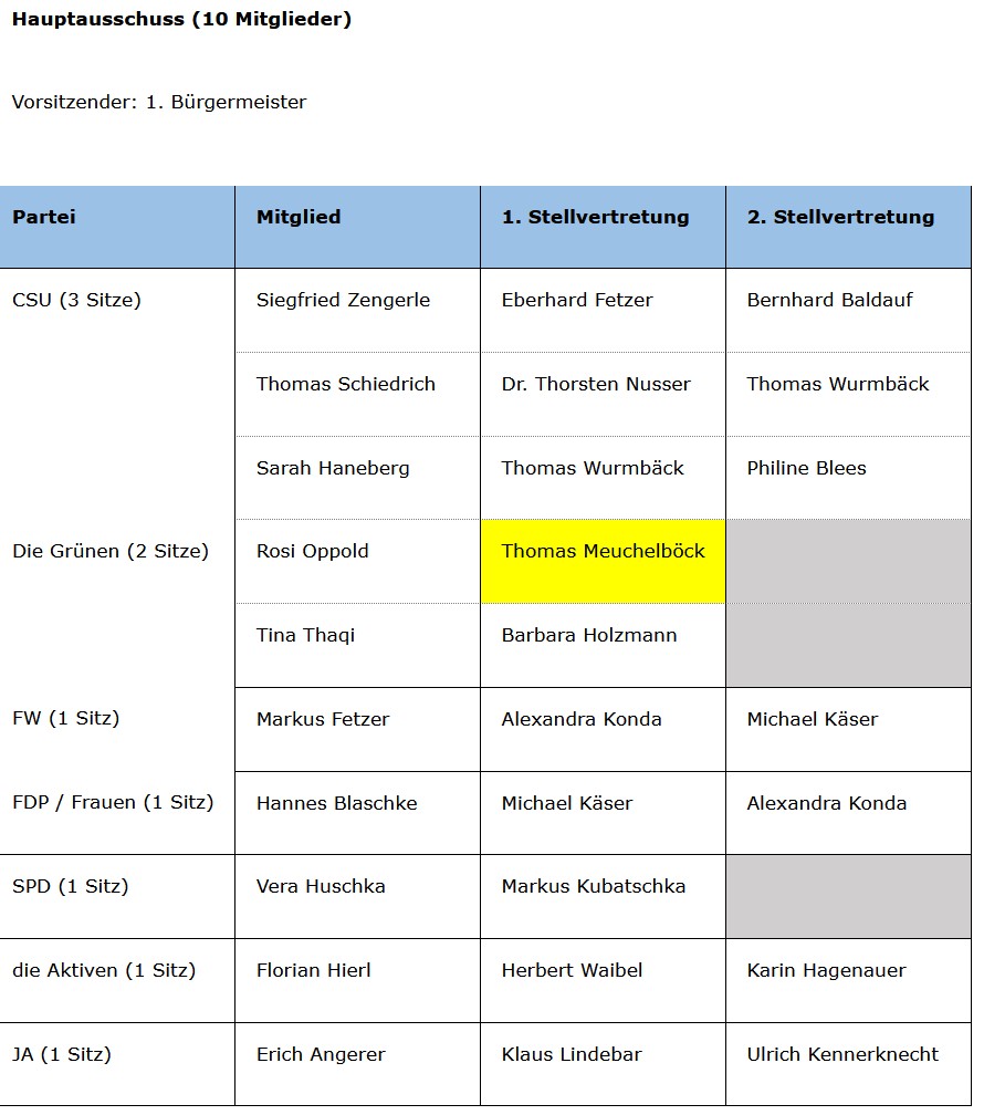 Aufgrund des Nachrückens von Thomas Meuchelböck in den Stadtrat ändert sich die Besetzung / Vertretungsregelung der Ausschüsse und der Vertreter, außerdem die Bestellung von Referenten usw. dem stimmte der Stadtrat einhellig zu.