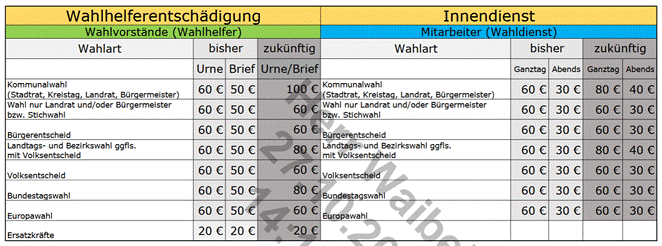 Einstimmig beschloss der Stadtrat das Erfrischungsgeld bei Wahlen (siehe Anlage) zu erhöhen.